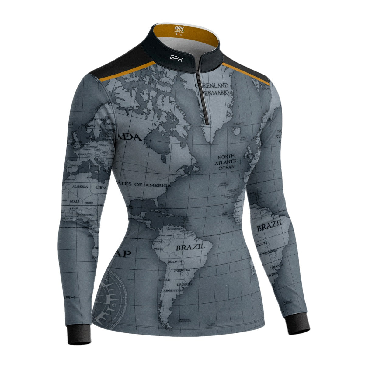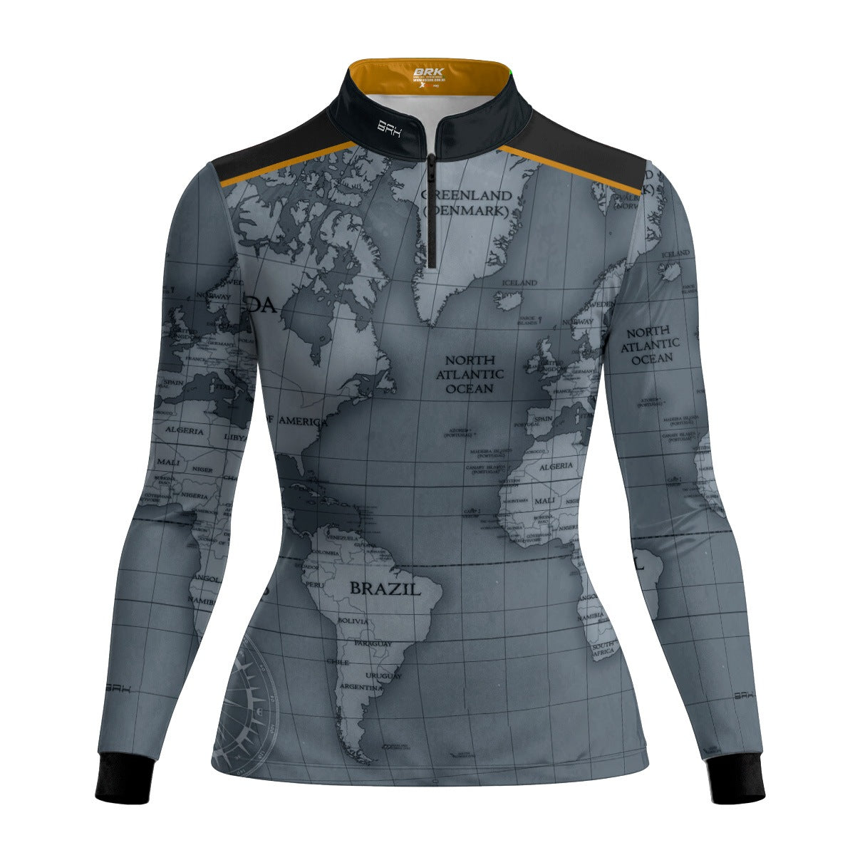 Camisa de Motociclismo Feminina Brk Mapa Mundi com Proteção UV50+