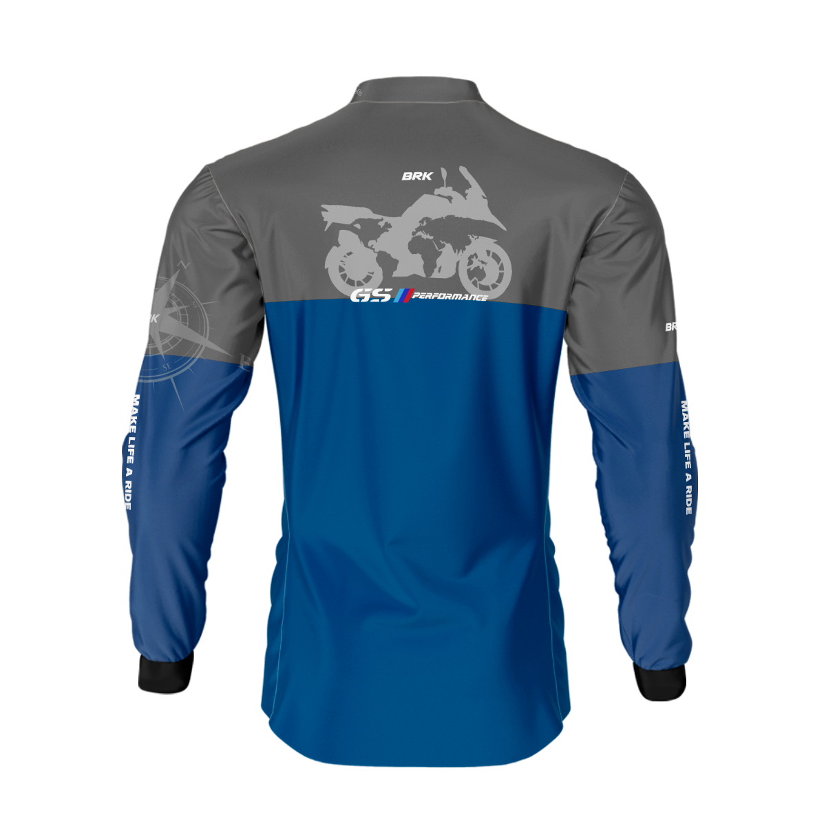 Camisa de Motociclismo Brk Mescla Azul Escuro com Proteção Solar UV50+